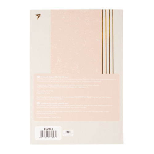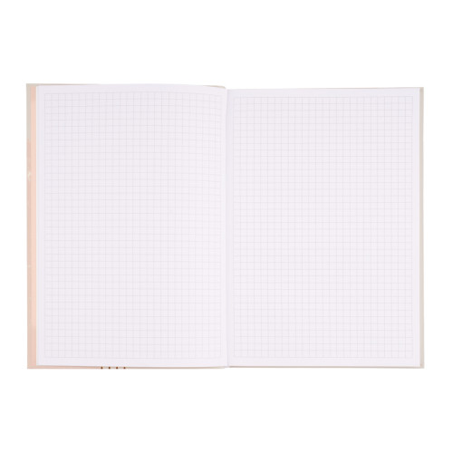 Блокнот містить 96 білосніжні офсетні аркуші у клітинку, що підходять для записів і схем. Інтегральна обкладинка з міцного картону покрита софт-тач ламінуванням і прикрашена срібною фольгою, завдяки чому виглядає елегантно й приємна на дотик. Надійне скріплення забезпечує довговічність і комфорт у використанні.