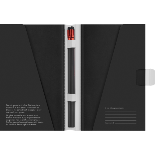 Формат блокнотів: середній (13 × 21 см). Сторінки: чисті (неліновані), кремовий папір преміум-класу. Кількість сторінок: 80 у кожному блокноті. Особливості: гнучка картонна обкладинка, закруглені кути, велика внутрішня картонна кишеня, останні сторінки з перфорацією для легкого відривання, поле «In case of loss» на форзаці. Папір сертифікований FSC™ — виготовлений з матеріалів добре керованих лісів та контрольованих джерел.