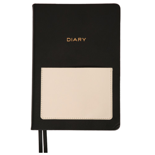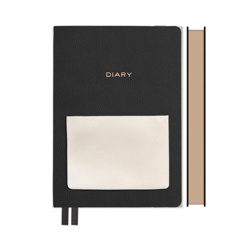 Тверда обкладинка з двох видів PU-матеріалів створює вишуканий візуальний контраст і підкреслює сучасний стиль. Кишеня на передній обкладинці дозволяє зручно зберігати візитки, нотатки чи чеки — практичний та водночас дизайнерський елемент, що вирізняє щоденник серед інших.