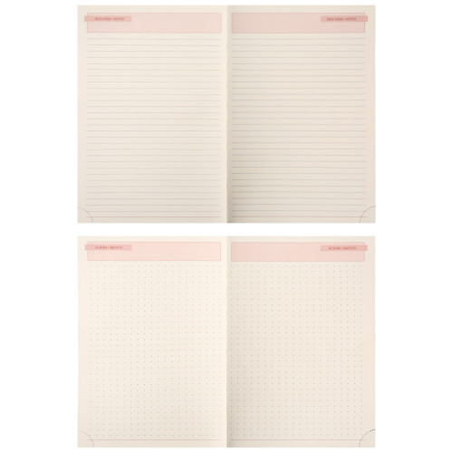 Паперовий блок містить 368 сторінок із кремового офсету щільністю 80 г/м². Папір приємний для очей і підходить для письма ручкою чи олівцем без просвічування. Кольоровий зріз, перфоровані куточки та додаткові сторінки для нотаток, контактів і річного планування роблять щоденник максимально функціональним і зручним.