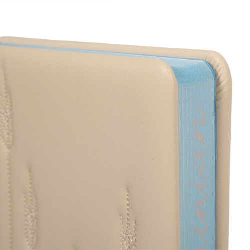 Тверда обкладинка з міцного PU-матеріалу гарантує довговічність і захист сторінок, зберігаючи охайний вигляд навіть при активному користуванні. Декоративна вишивка додає виразності й створює ефект ручної роботи, підкреслюючи індивідуальність власника. Дві закладки-ляссе роблять щоденник ще зручнішим.
