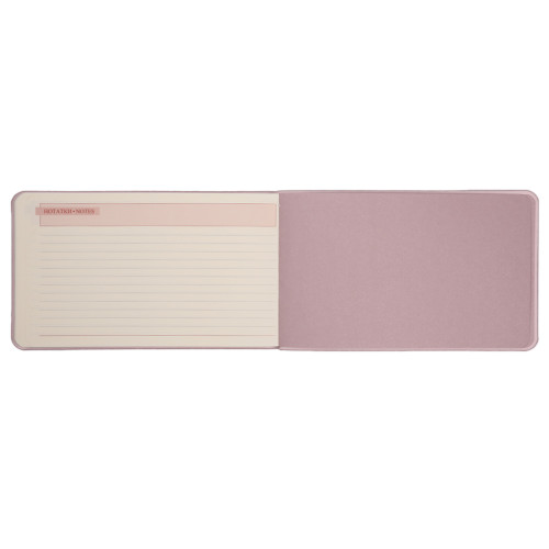 Блок складається зі 128 кремових сторінок щільністю 80 г/м², які не просвічують і комфортні для письма. Закруглені кути захищають сторінки від пошкоджень, а зріз у колір блоку створює гармонійний вигляд. Усередині є календарі, довідковий блок і сторінки для нотаток.