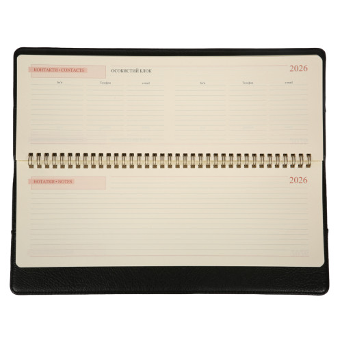 Діловий тижневик датований 2026 Leo Planner Vitto 34,5x12,5 см 128 стор. твердий чорний