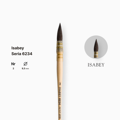 Професійний пензель Isabey 6224 Petit Gris Pur — елітний круглий пензель з 100 % натуральної сибірської білки вищого ґатунку. Класика французької акварелі для великих заливок, м’яких переходів та точної деталізації.