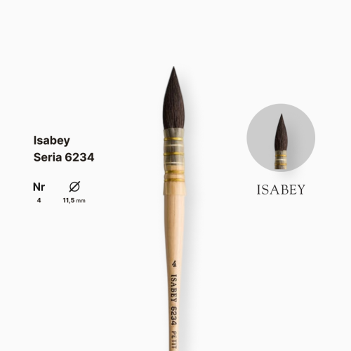 Професійний пензель Isabey 6224 Petit Gris Pur — елітний круглий пензель з 100 % натуральної сибірської білки вищого ґатунку. Класика французької акварелі для великих заливок, м’яких переходів та точної деталізації.