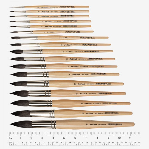 При формуванні ворсу художнього пензля на виробництві використовують лише ніж – для видалення та підрізання волосків чи щетинок, які лежать у зворотному напрямку. Про серію: пензлі DaVinci Petit Gris Pur 5590 створені з якісного натурального ворсу білки.