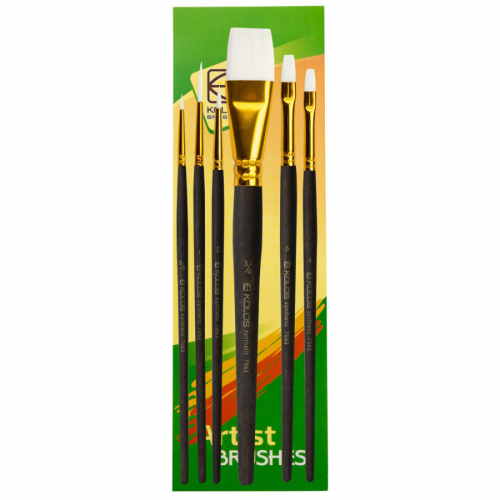 Набір пензлів синтетика 6 шт, круглі 3, плоскі 3 серія KOLOS 7063