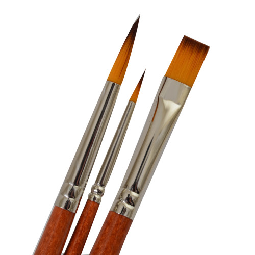 Синтетичний ворс має високу пружність і еластичність, добре утримує фарбу та рівномірно наносить її на поверхню. Пензлі підходять для роботи з аквареллю, гуашшю, акрилом та олійними фарбами.
