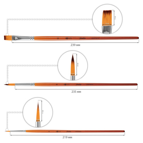 Мітки: Набір пензлів художніх №2, синтетика, 1 шт. плоский (№10), 2 шт. круглі (№2, 8), коротка ручка, Santi