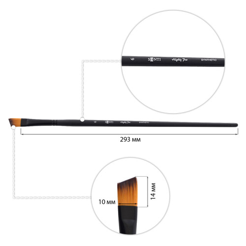 Мітки: Пензель синтетика Santi Highly Pro, довга ручка, кутова, №6