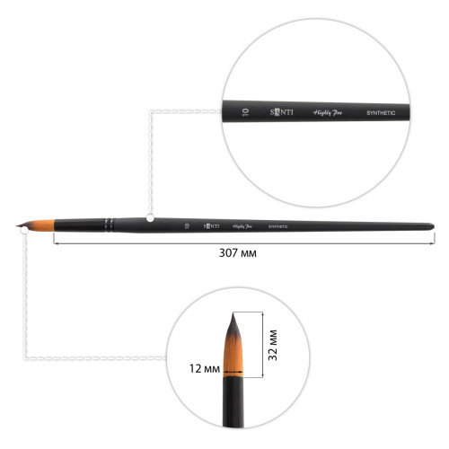 Круглі пензлі «Santi Highly Pro» відрізняються чудовою якістю синтетичного ворсу, особливою еластичністю і пружністю волосяного пучка. Представлені на довжиною ручці, захищеної матовим лаком. Дуже добре підходять для роботи з усіма видами фарби. Міцна обойма надійно зафіксована на держаку завдяки професійному клею і обтиску. Призначені як для створення фактури, так і для роботи над деталями, промальовування товстих і тонких ліній.