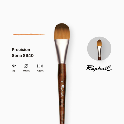 Професійний овальний синтетичний пензель Raphaël Precision Oval (серія 8404) — високоякісна імітація натурального колонка. Спеціально розроблений для акрилу, олії та гуаші, коли потрібні широкі мазки, м’які переходи, текстури та точна деталізація.
