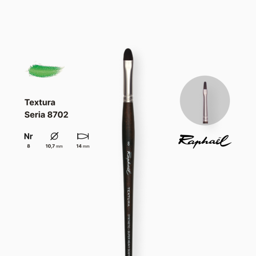 Мітки: Пензель синтетика овальний Raphael Textura, №8, довга ручка
