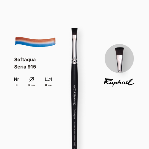 Професійний плоский синтетичний пензель Raphaël Softaqua Flat (серія 805) — преміальна імітація натуральної білки. Розроблений спеціально для акварелі, гуаші та акрилу, коли потрібна м’якість, великий запас води та рівномірні заливки без використання натурального волоса.