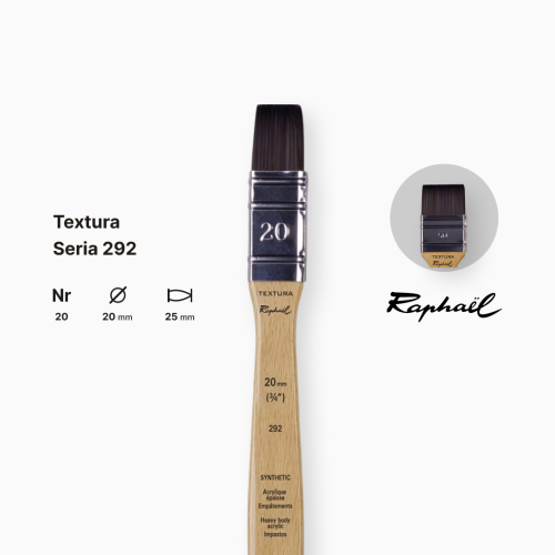 Професійний плоский синтетичний пензель Raphaël Textura Flat (серія 8404) — спеціальна розробка для акрилу, олії та гуаші. Створює виразні текстури, рельєфні мазки, ефекти сухого пензля та рівномірні заливки, зберігаючи при цьому відмінну пружність і контроль.