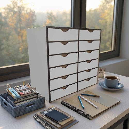 Універсальний настільний органайзер №272 — це функціональне та стильне рішення для зберігання канцелярського приладдя, художніх матеріалів і навіть косметики. Завдяки продуманій конструкції з 12 ячейок і шухлядок, він допоможе підтримувати порядок і надихати на творчість у будь-якій майстерні, офісі чи навчальному просторі.