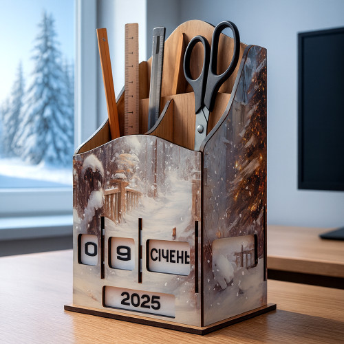 Вічний календар «Пори року» з органайзером — це стильний і практичний аксесуар, який поєднує функціональність і красу. Його оригінальний механізм на коліщатках дозволяє легко змінювати дату, а продуманий дизайн створює атмосферу затишку й гармонії. Це не просто календар — це елемент декору, що прикрасить ваш стіл і допоможе тримати порядок.
